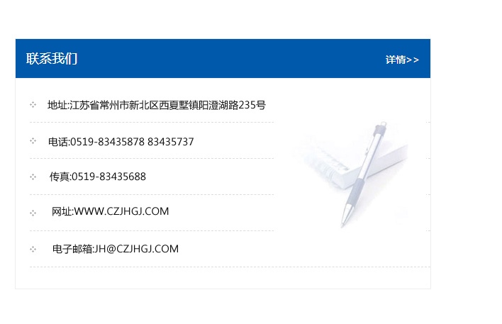 地址:常州市新北區友邦商務大廈1幢16、17層  電話:0519-85101652  傳真:0519-85112595  郵編:213022  網址:www.cz-jiayue_cn.sherongjiancai.com  郵箱:xiajifengaa@163.com